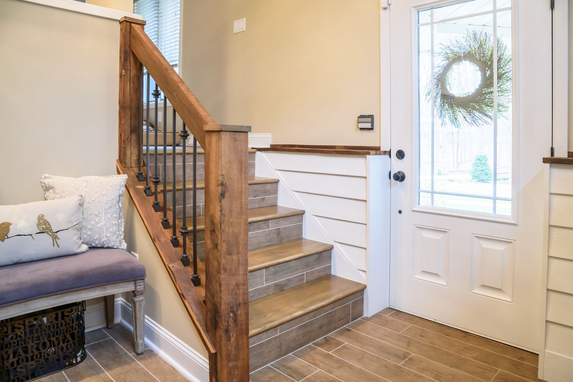 - Full custom glass/iron stair rail system