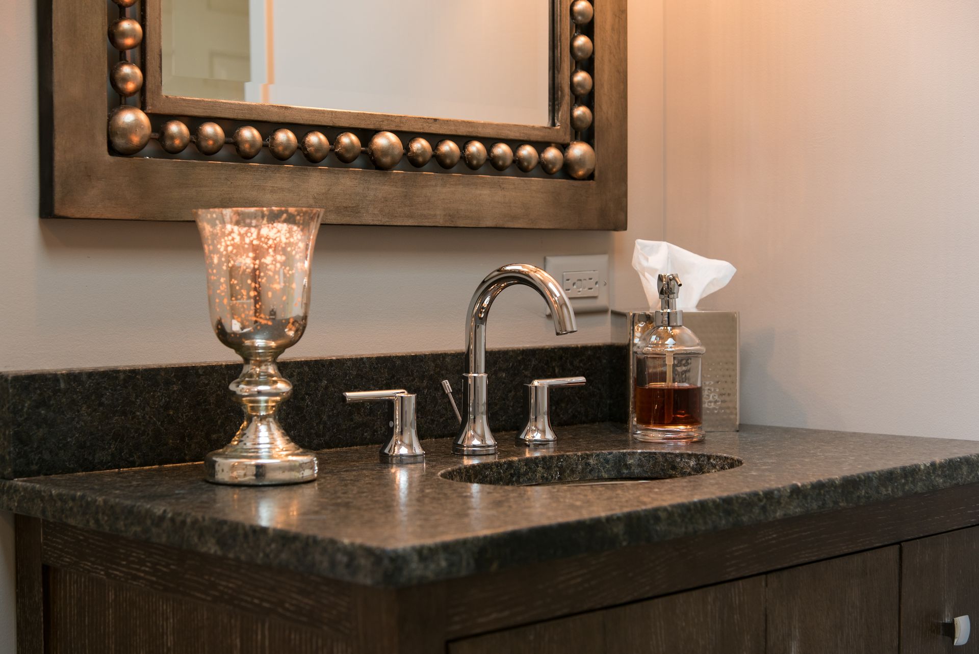 - Custom bath vanity with decorative arch